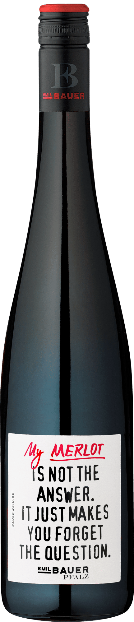 Der Emil Bauer »My Merlot is not the answer…« zeichnet sich durch seine gekonnte Balance zwischen Fruchtigkeit und Struktur aus, die typisch für hochwertige Merlots ist, aber hier eine besonders zugängliche und harmonische Ausprägung findet. Die sorgfältige Vinifikation im Hause Emil Bauer und die Auswahl der Trauben aus den besten Lagen der Pfalz verleihen ihm eine feine Eleganz und eine moderne Interpretation der Rebsorte, die ihn von vielen anderen Merlots abhebt. Der humorvolle Name unterstreicht zudem die Philosophie des Weinguts, Weingenuss mit Lebensfreude zu verbinden.