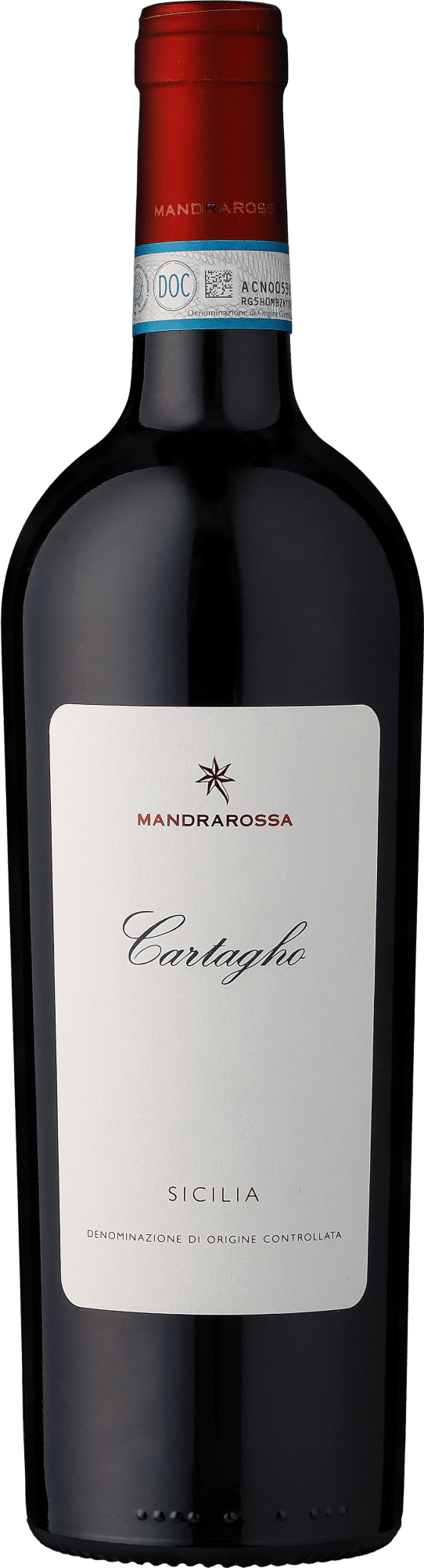 Der Mandrarossa »Cartagho« stammt aus der Weinregion Menfi an der südwestlichen Küste Siziliens, Italien. Die Trauben wachsen in den Weinbergen der Cantina Mandrarossa, die für ihr besonderes Terroir, geprägt von kalkhaltigen Böden und dem Einfluss des Mittelmeers, bekannt ist.